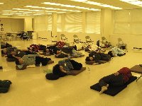 十四位中外學員參加了初級禪坐班,法師由調身,調息,調心,清楚有次第的介紹及示範禪坐方法,並融合八式動禪,瑜珈,推拿,方便善巧的帶領初學者在動靜交錯中,學習身的調合與散亂心的調伏.法師的用心與細心,